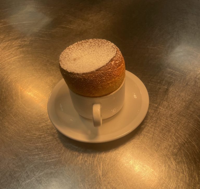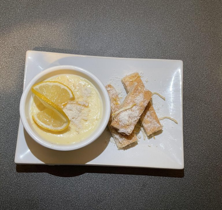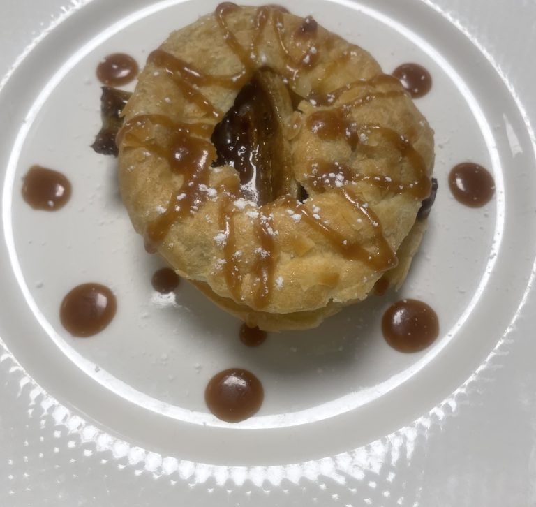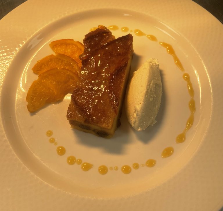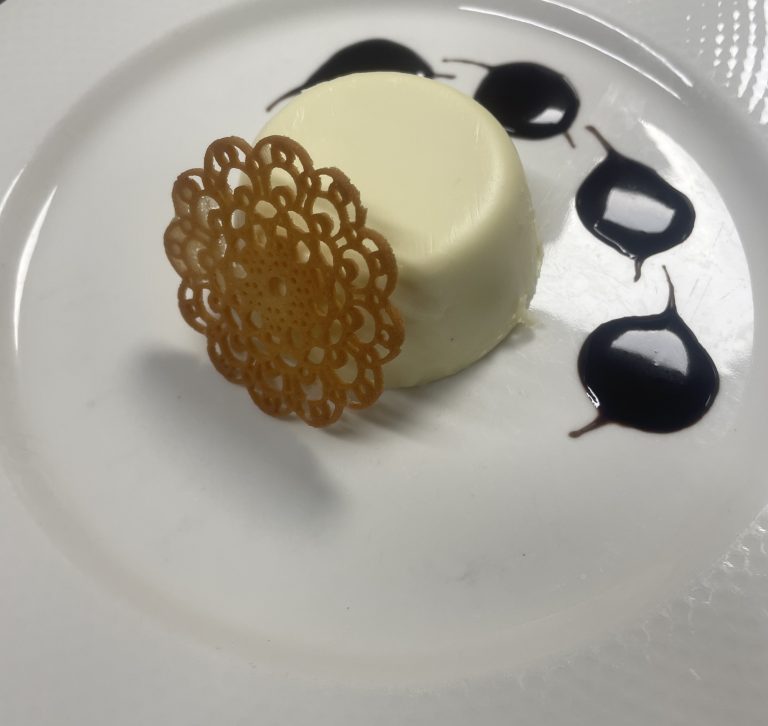 White chocolate panda cotta, chocolate sauce and a tuille biscuit on January 10, 2025January 10, 2025