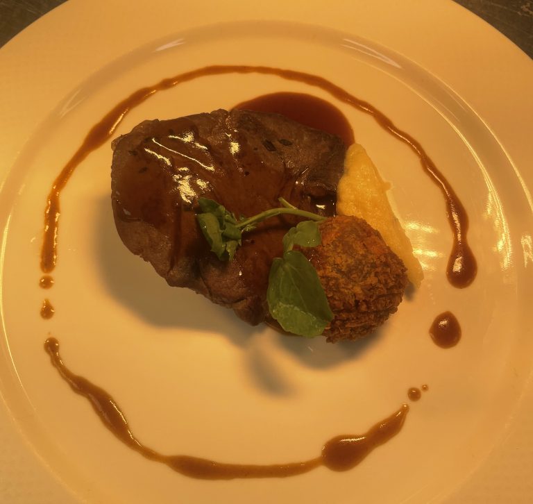 Pan-seared rump steak, brisket ball, celeriac puréed with creamy mash on January 10, 2025January 10, 2025